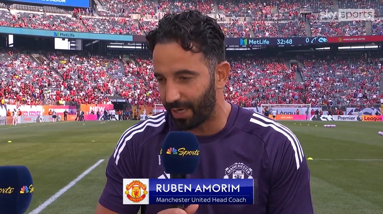 英超夏季赛循环赛第1轮,曼联将对阵西汉姆联。赛前,红魔主帅阿莫林在场边接受了媒体的采访。