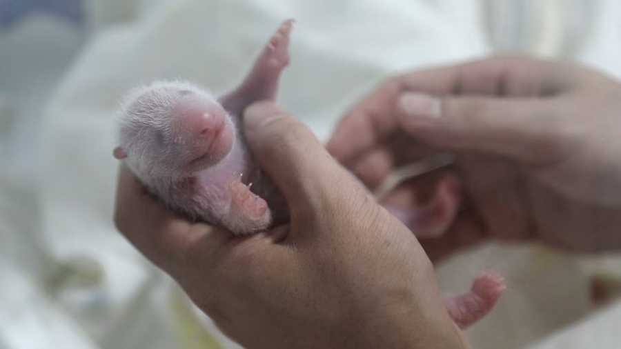粉嘟嘟的大熊猫宝宝。 图片来源:上海野生动物园