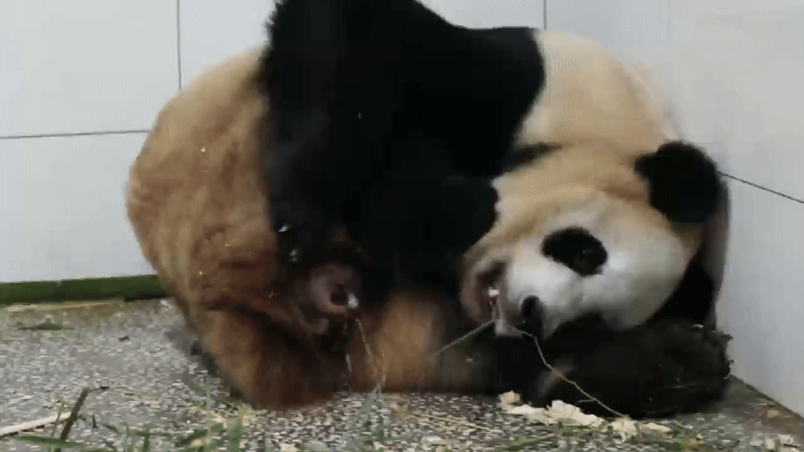 解放日报·上观新闻记者今天在大熊猫馆注意到,“芊然”“芊逸”仍以视频直播的方式与公众见面。目前,它们与“芊金”居住在与外隔绝的专属保育区内,享受着无微不至的关怀与照护。