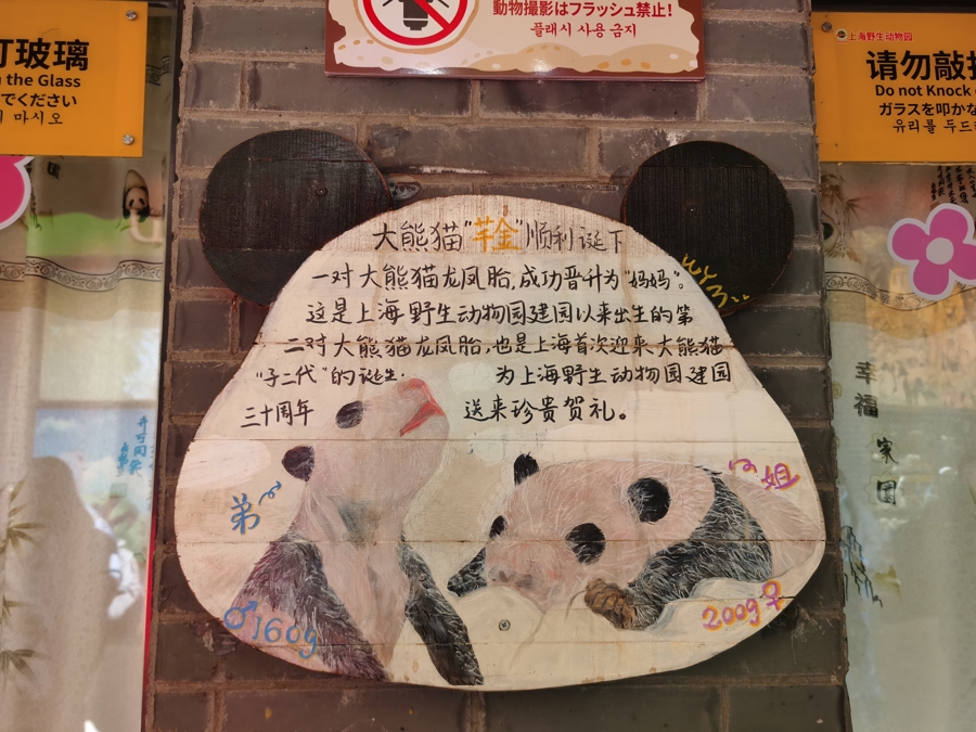上海野生动物园大熊猫馆育幼室外的手绘板。 陈玺撼摄