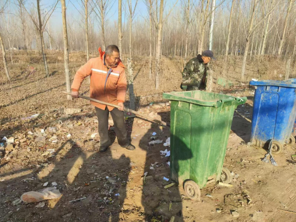 郭书庆(左)在清理垃圾。图片来源:河海新闻
